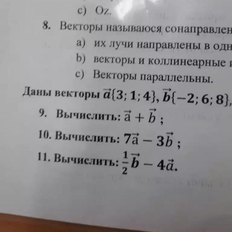 11. 0.5в-4а= (-1;3;4)-(12;4;16)=(-13;-1;-12)