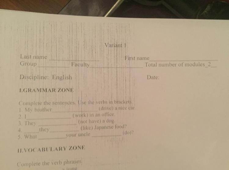 1 drives 2 work 3 don’t have 4 do they like5 what does your uncle do