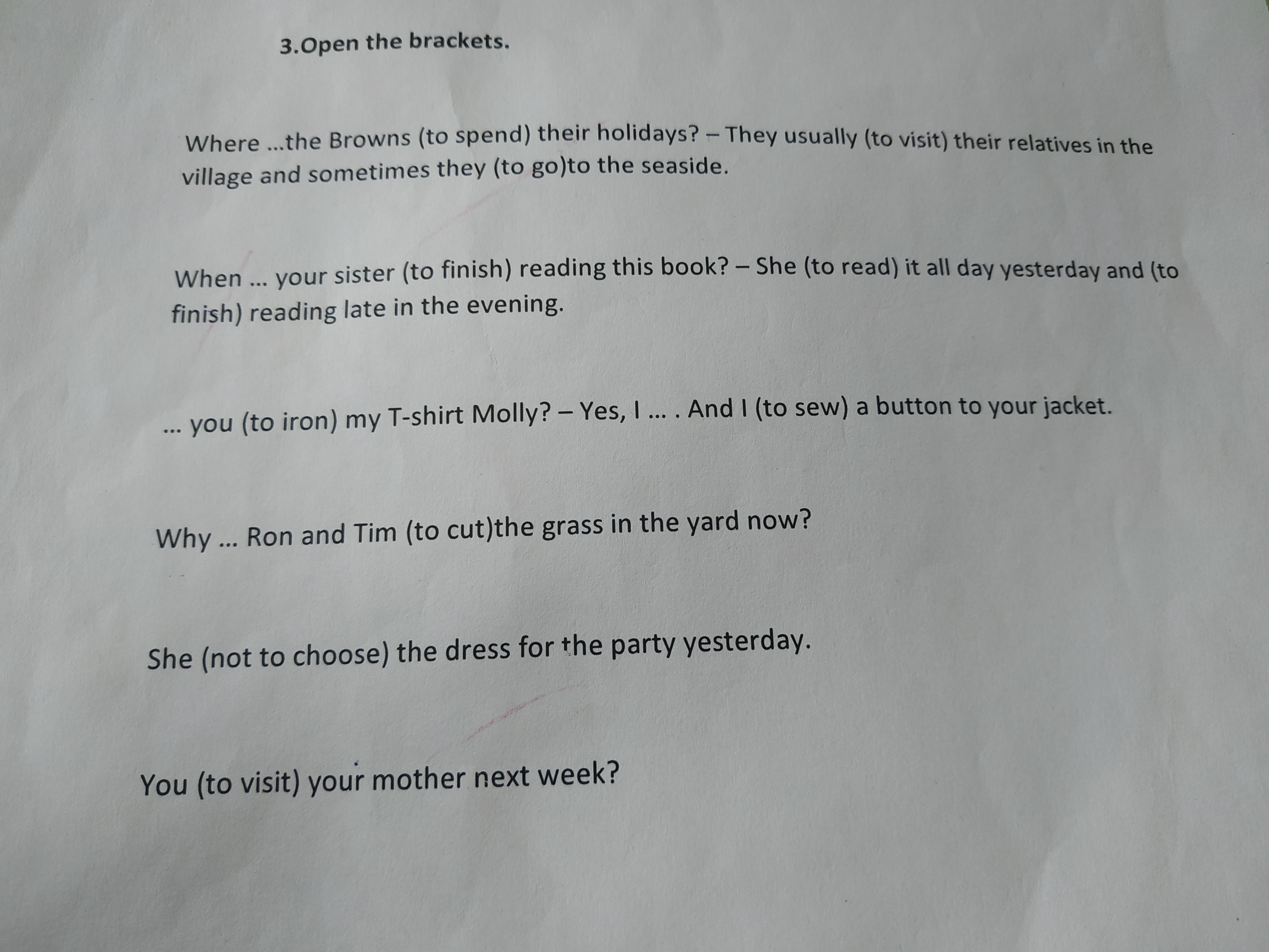 Where do the Browns spend their holidays? - They usually visit their relatives in the village and sometimes they go to...