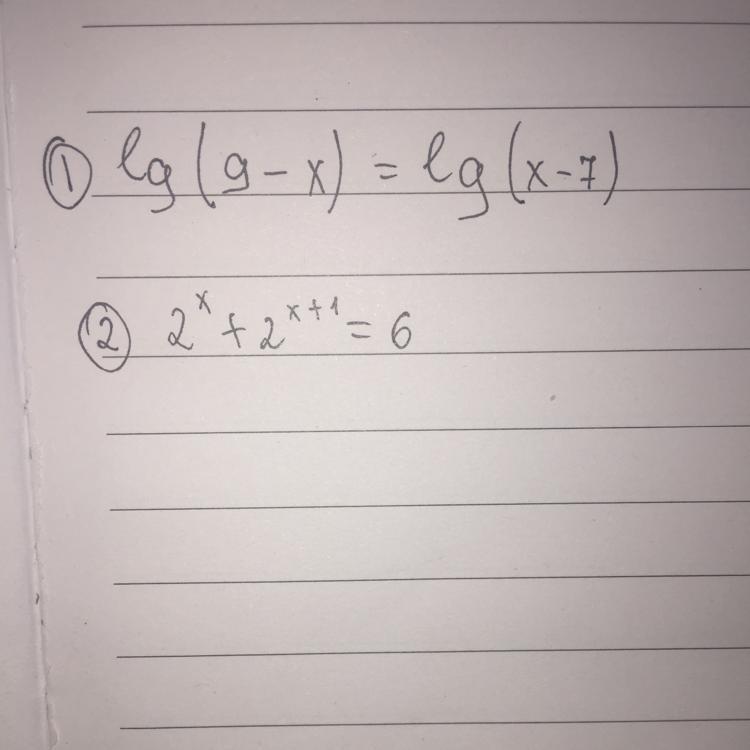 Объяснение N2. (1+2)*2^х=6. 3*2^х=6. 2^х=2. 2^х=2^1. Х=1. N1. Log10 (9-x)=Log10 (x-7). 9-x=x-7. - x-x=-7-9. - 2x=-16. X=8