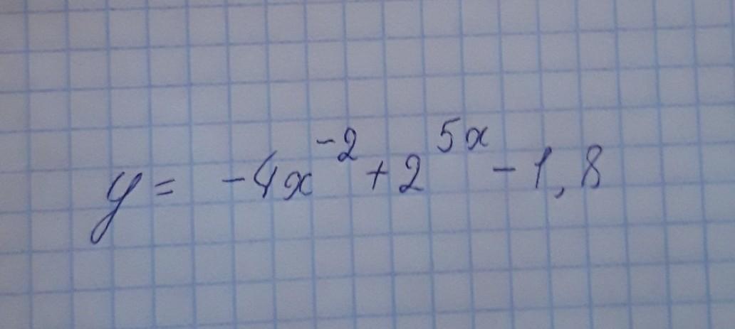 у'=(-4x⁻²+2⁵ˣ-1.8)'=8x⁻³+5*2⁵ˣ*㏑5=8/x³+5*2⁵ˣ*㏑5