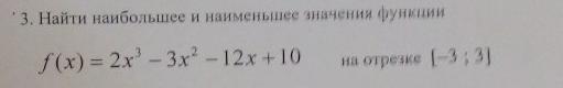 f(x) = 2x^3 -3x^2-12x+10 на отрезке[-3;3]