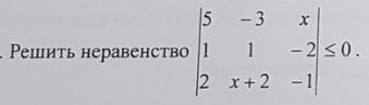 Определитель матрицы будет равен: 5*1*(-1)-х-4+(-3)*(-2)*2-х*1*2-(-3)*1*(-1)-(-2)*(х+2)*5= -5-х-4+12-2х-3+10х+20 = 7х + 20 ≤ 0