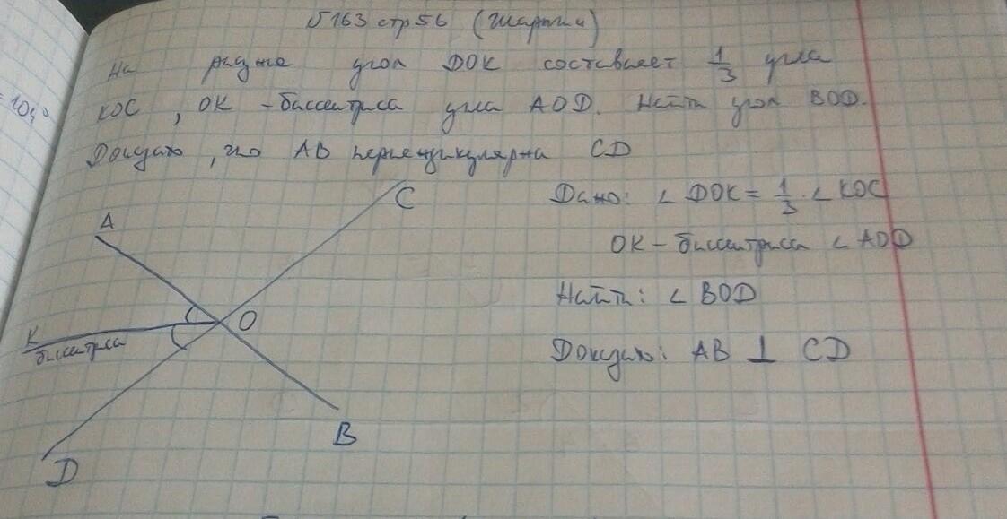 Ответ: ∠DOB=90°. Перпендикулярность прямых АВ и CD доказали.