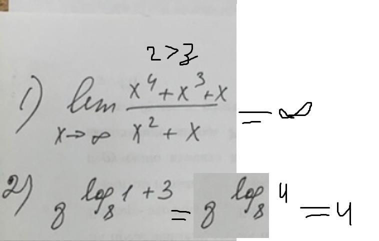 Первый предел равен ∞, т.к. числитель быстрее стремится к ∞, чем знаменатель. /в числитель многочлен 4=й степени, а знаменатель второй/