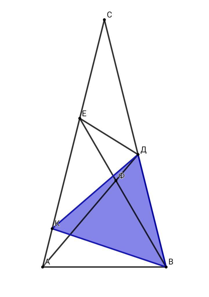 В ΔВКЕ: ∠ВЕК = 180° - (∠ВКЕ + ∠КВЕ) = 180° - (100° + 40°) = 40° ⇒ ΔВКЕ - равнобедренный , ВК = КЕ