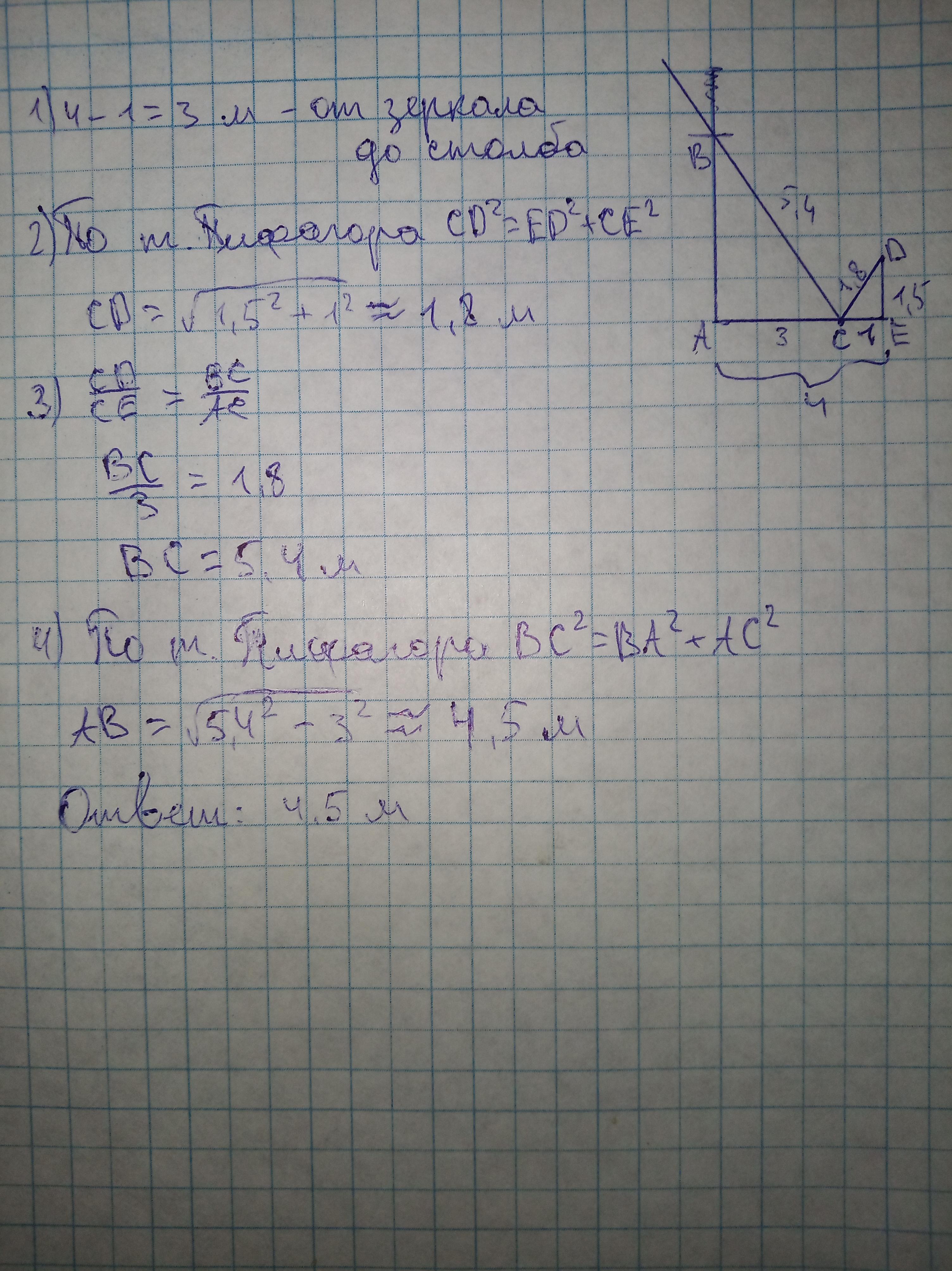 до зеркальца 1 м, линия глаз мальчика находится на высоте 1,5 м над Землёй. Определить в СИ высоту