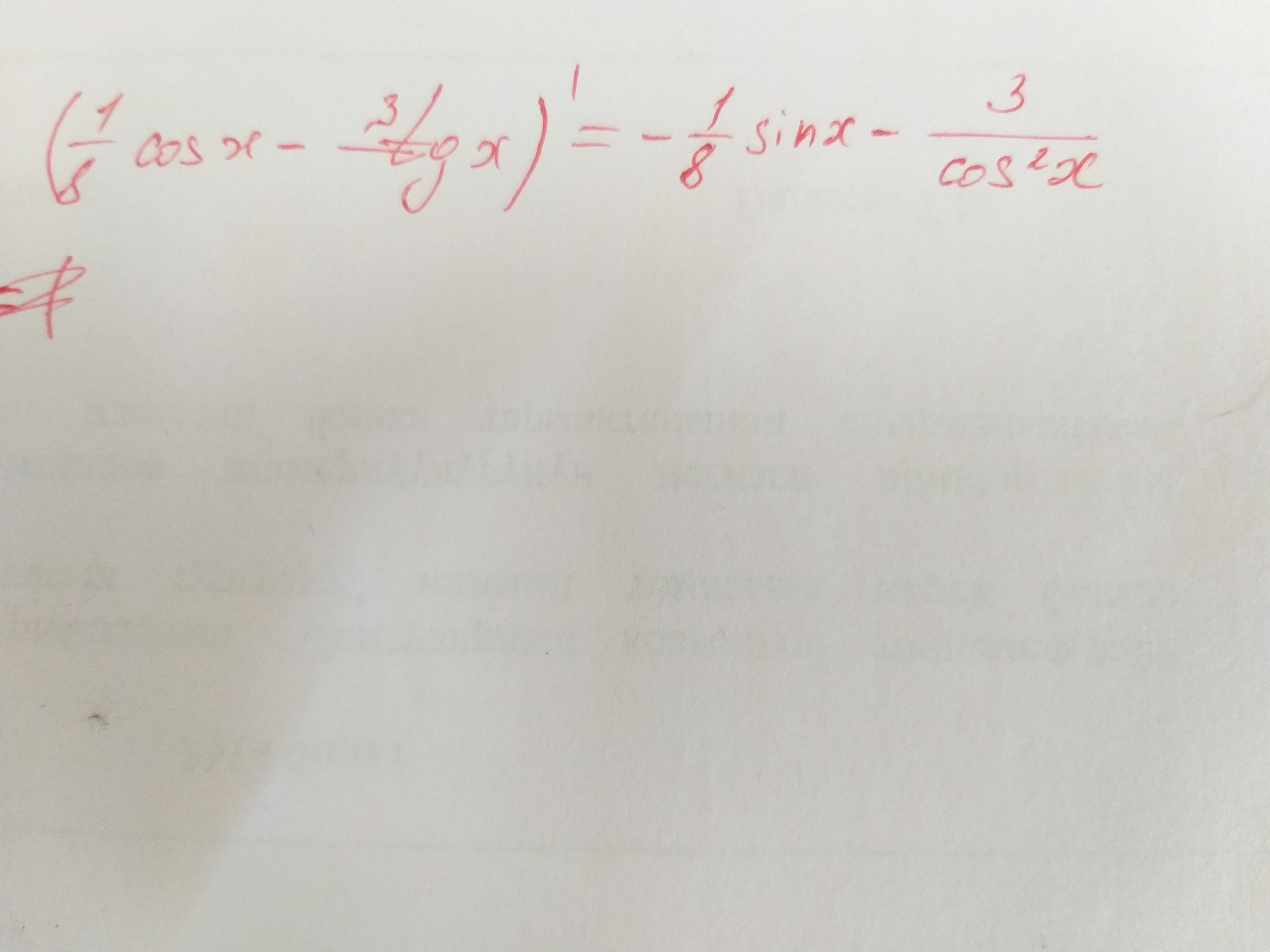 (1/8cos x - 3tg x)'=-0.125sinx -3/cos²x