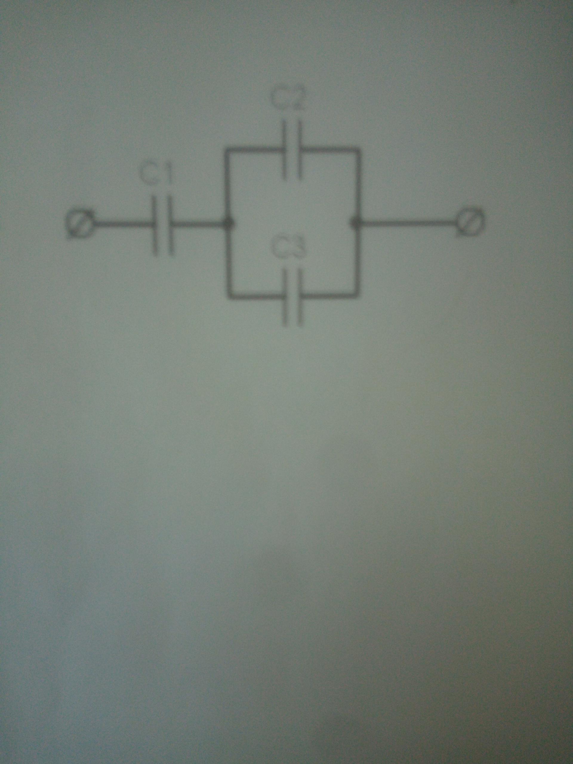 Определите емкость батареи конденсаторов, если ёмкость первого конденсатора c1=1мкф, второго c2=2мкф, третьего c3=4мкф