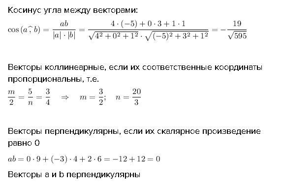 Проверьте перпендикулярность векторов а( 0;-3;2) b(9;4;6)