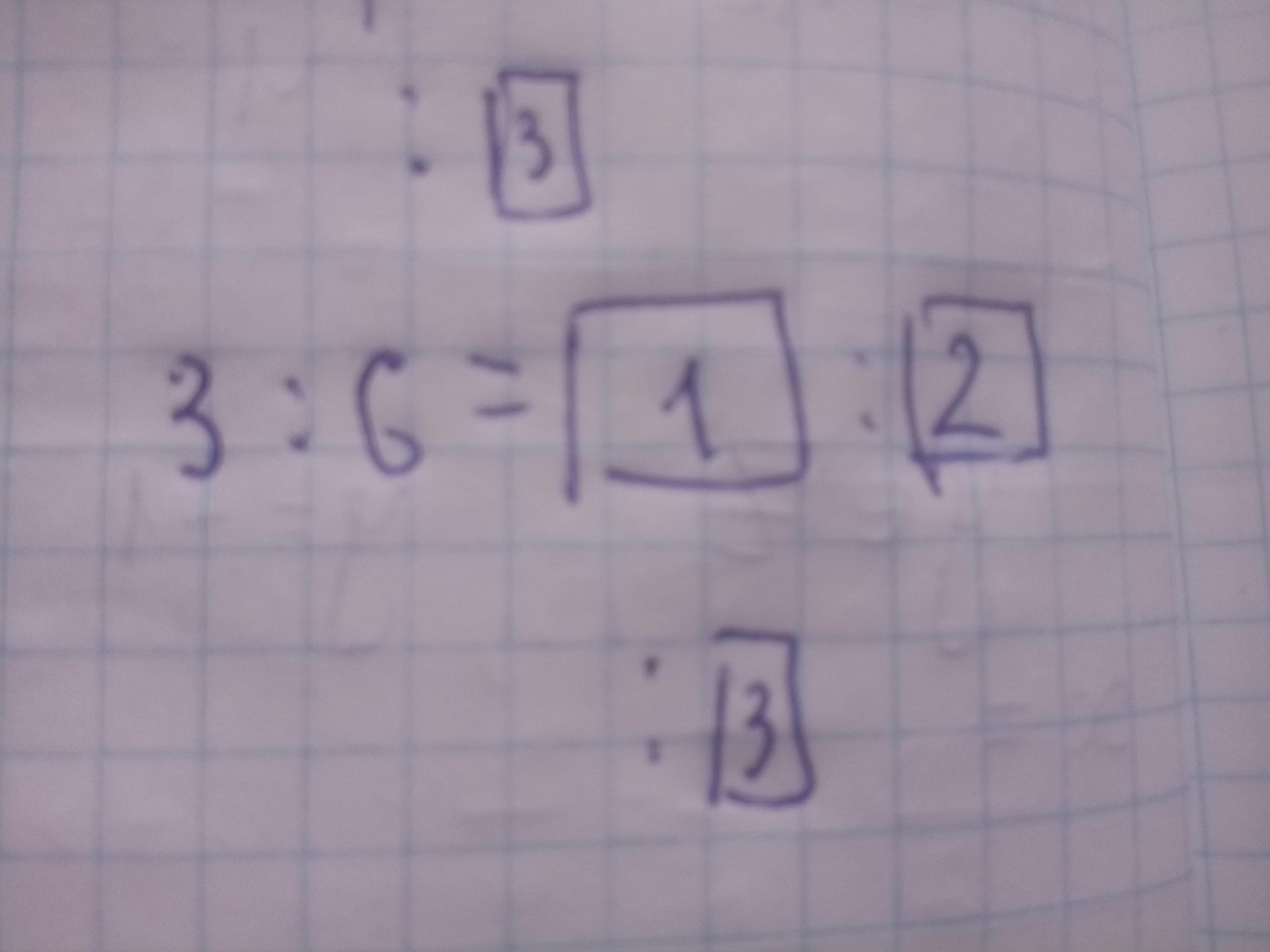 Так как 3:6-это дробь(3/6), её можно сократить. Оба числа сокращаем в три раза, и получается число 1:2