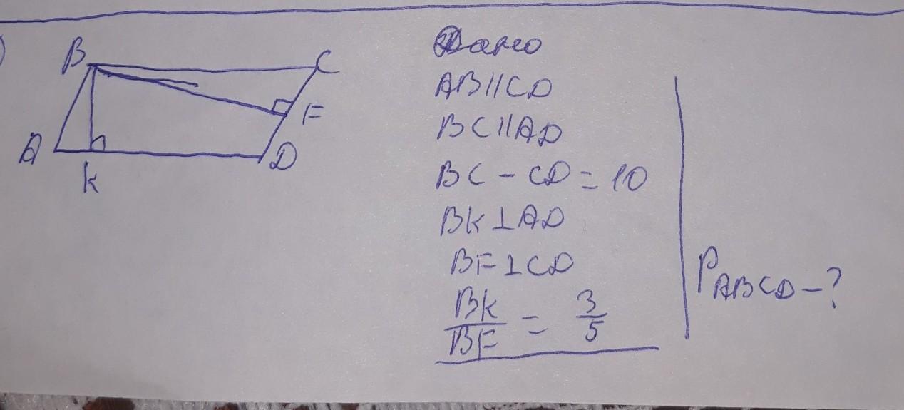 Приравняем площади AD*BK=CD*BF, CD=x, BC=10+x, подставим в ур-е (10+x)*3/5 BF=x*BF ( где BK=3/5BF), (10+x)*3=5x, 30+3x=5x, 2x=30, x=15,