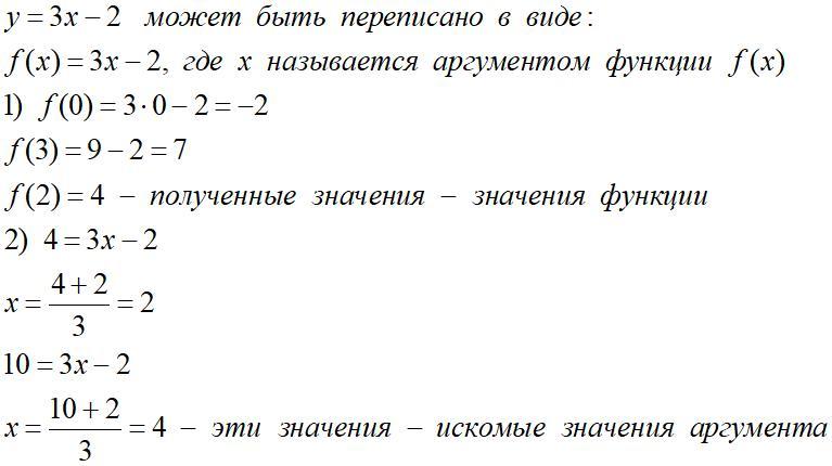 Функция задана формулой y=3x-2. 1)Найдите значение функции для значений аргумента,равного 0,3 2)При каком значении аргумента значение функции равно 4,10?