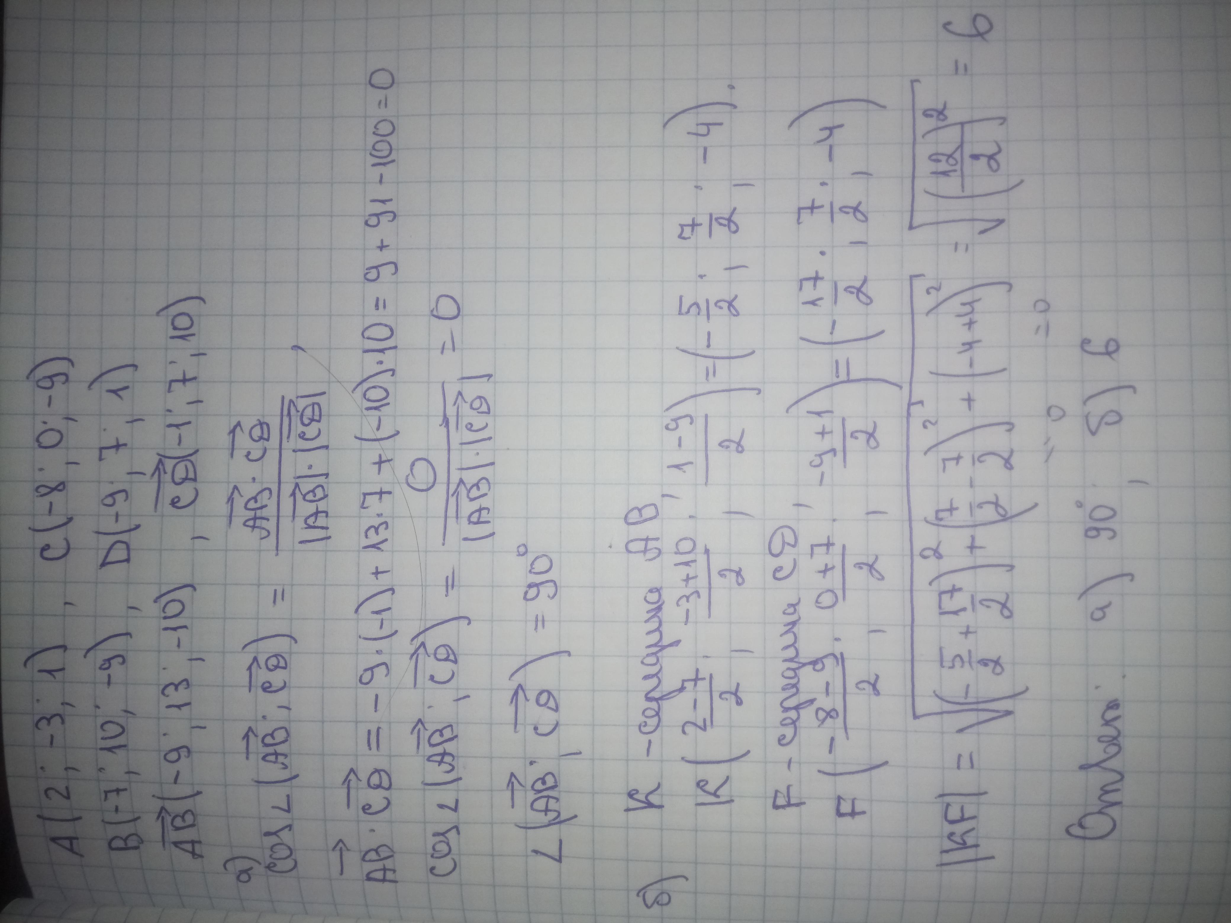 Даны точки: A(2:-3:1) B(-7;10;-9) C(-8:0:-9) D(-9;7;1).