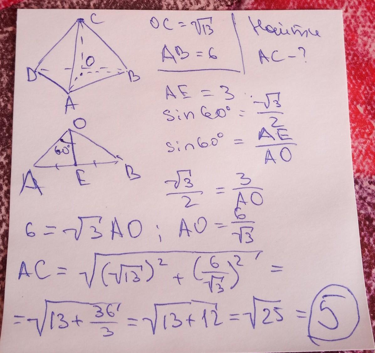 из приложенного рисунка надо найти ребро АС. АС равно 5