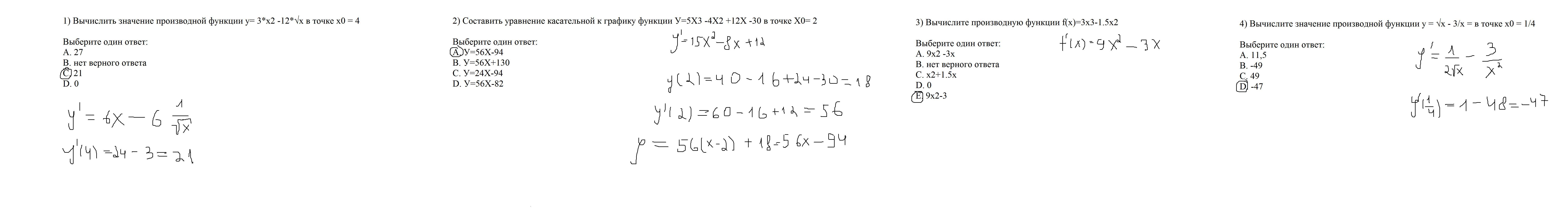 4) Вычислите значение производной функции у = √х - 3/х = в точке х0 = 1/4