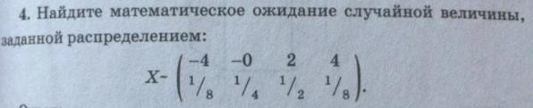 M(X) = 0.125*(-4) + 0.25*(-0) + 0.5*2 + 0.125*4 = -0.5 + 0 + 1 + 0.5 = 1.