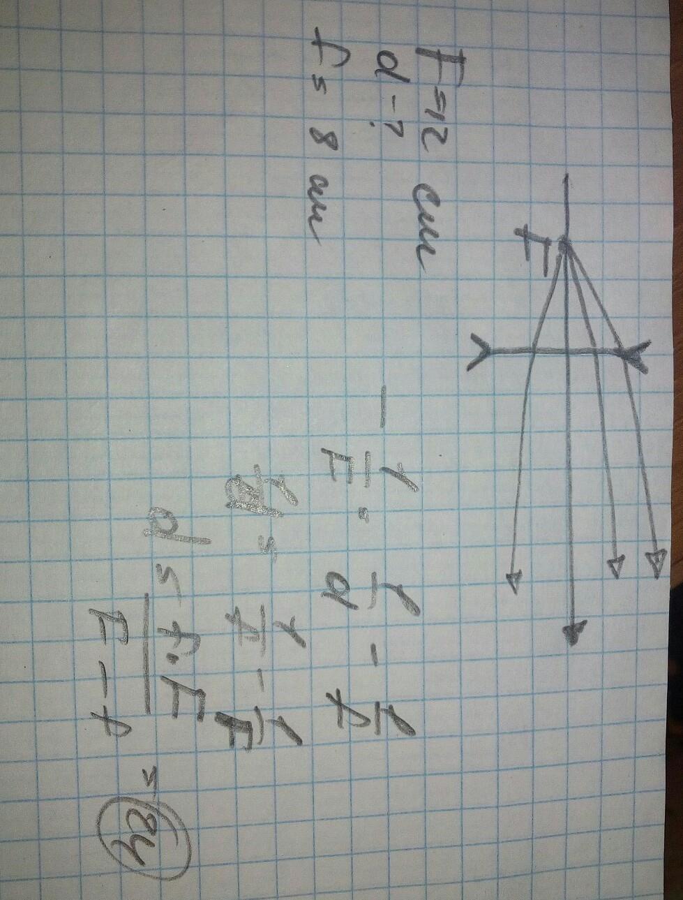 Фокусное расстояние вогнутой линзы 12 см. На каком расстоянии от линзы находится предмет, если его изображение удалено от нее на 8 см?