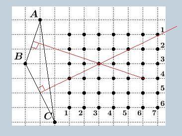 От точки В расстояние ровно 5, а до точек А и С расстояние является диагональю прямоугольников 3х4, то есть