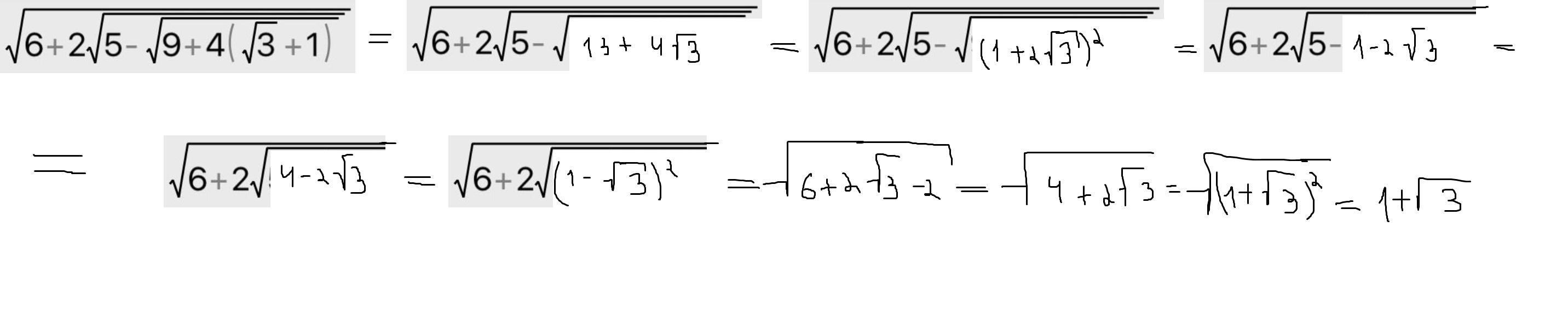 3. √((6+2(√3-1))=√(6+2√3-2)=√(4+2√3)=√(1+√3)²=I1+√3I=1+√3
