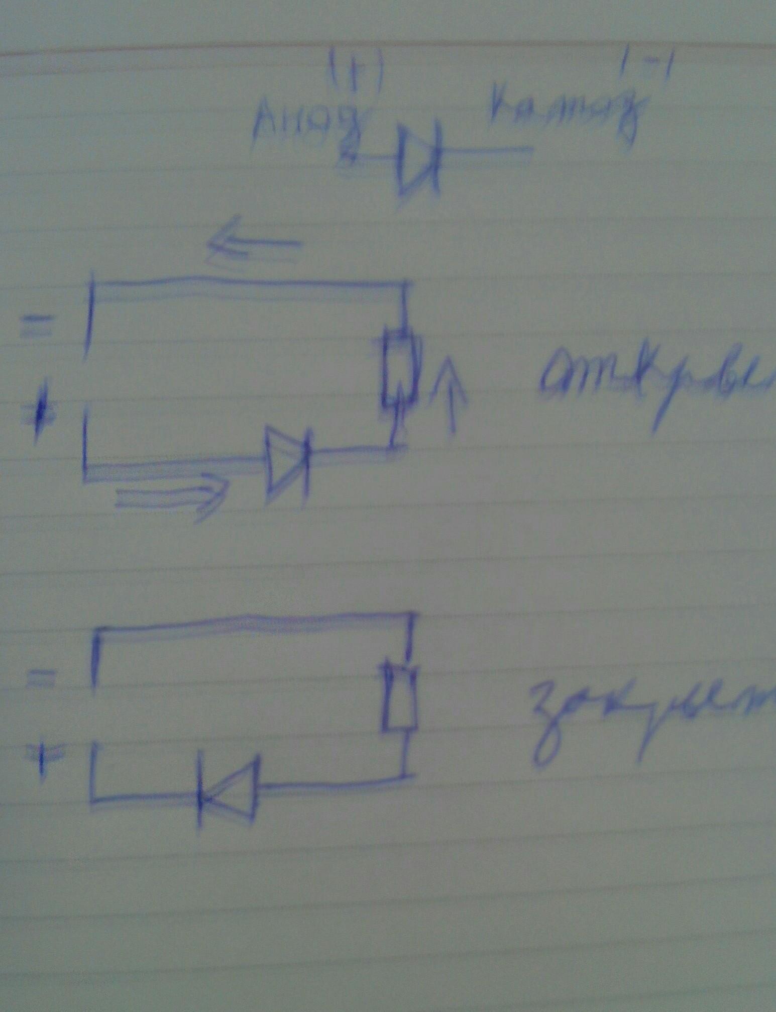 Если к аноду приложить прямое напряжение, то анод будет иметь положительный потенциал относительно катода(диод открыт)