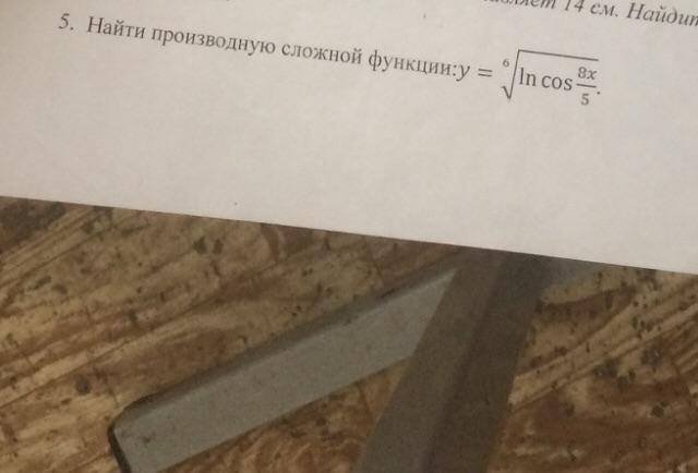 (1/6)*(ln(cos(8x/5)))^(-(5/6))*(1/cos(8x/5))*(-sin(8x/5))*(8/5) = (-4/15)*(ln(cos(8x/5)))^(-(5/6))*(tg(8x/5))