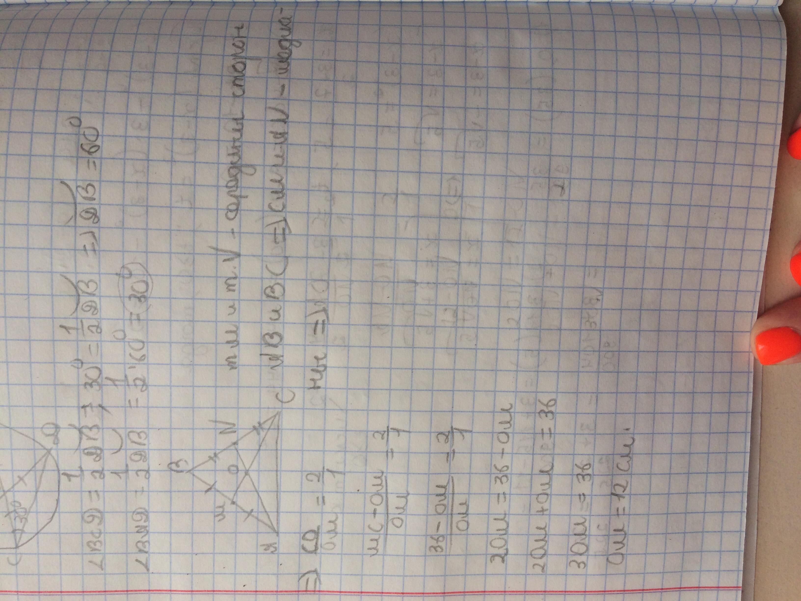 и CM пересекаются в точке O, AN=12, CM=36. Найдите OM.