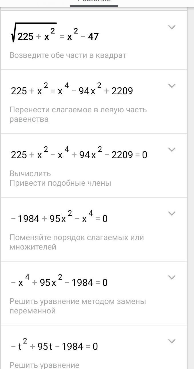 225+х^2=(x^2-47)^2
