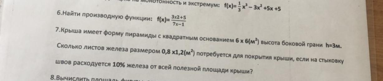 7. 0,8·1,2 = 0,96 м² - площадь одного листа железа.