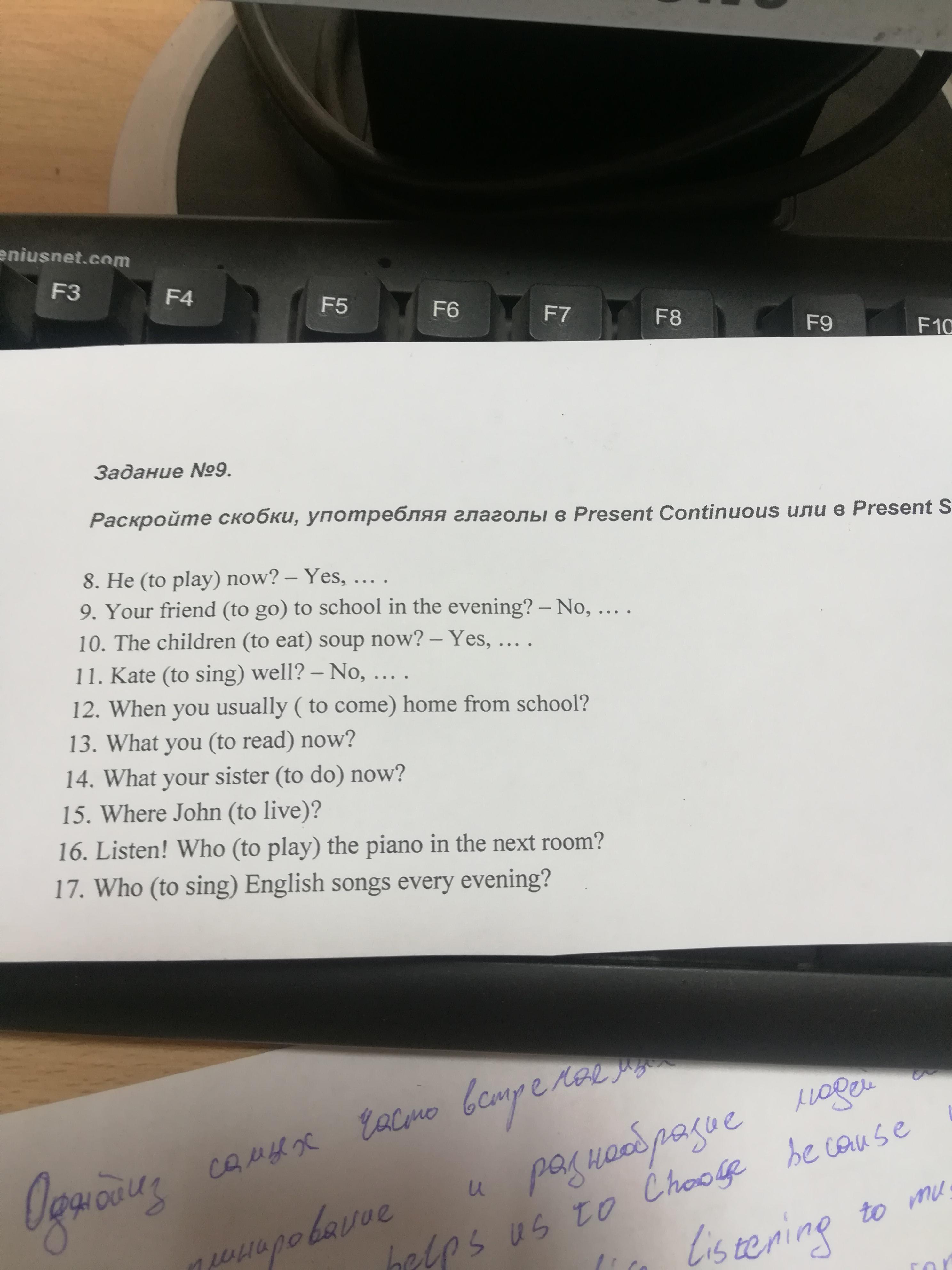 9. Does your friend go to school in the evening? - No, he doesn't.