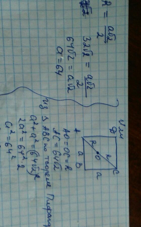 Радиус окружности, описанной около квадрата, равен 32 корень из двух. Найдите длину стороны этого квадрата.