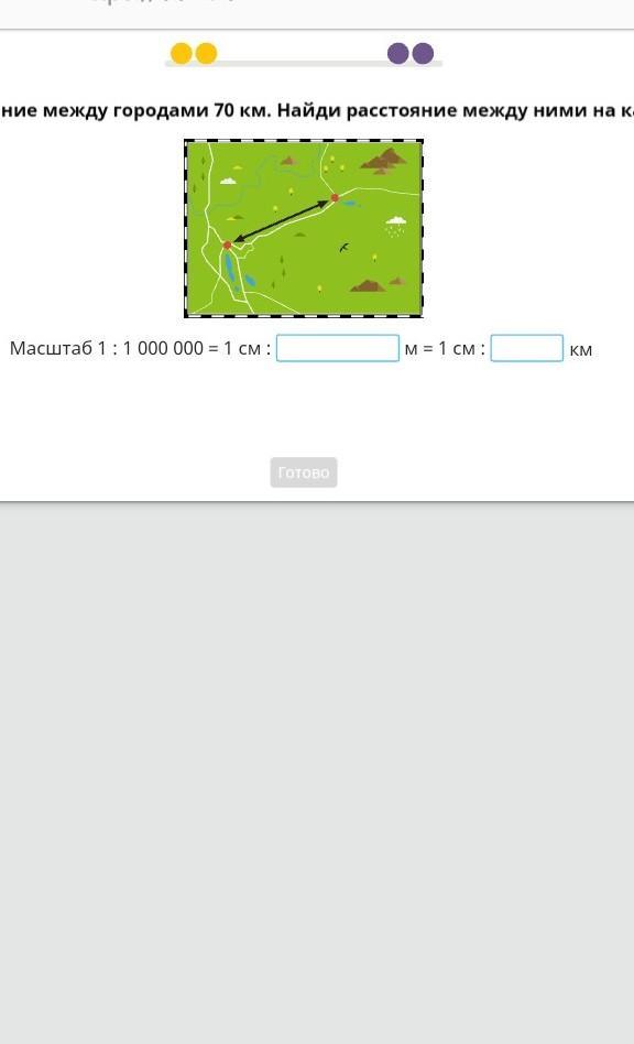Помогите пожалуйста Расстояние между городами 70 км. Нужно найти расстояние между ними на карте