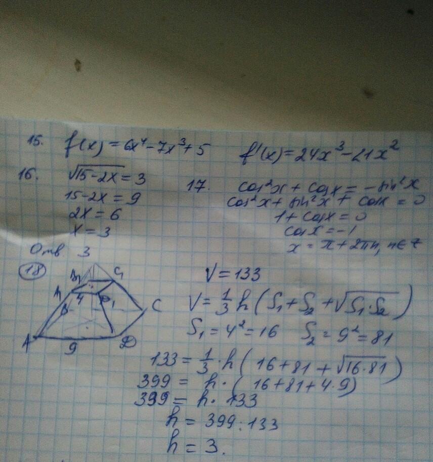 16)возведем обе части в квадрат, 15-2x=9, -2x=-6, x=3
