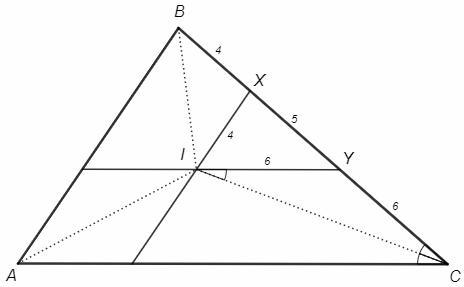 BXI, IYC - равнобедренные, XI=BX=4, IY=YC=6
