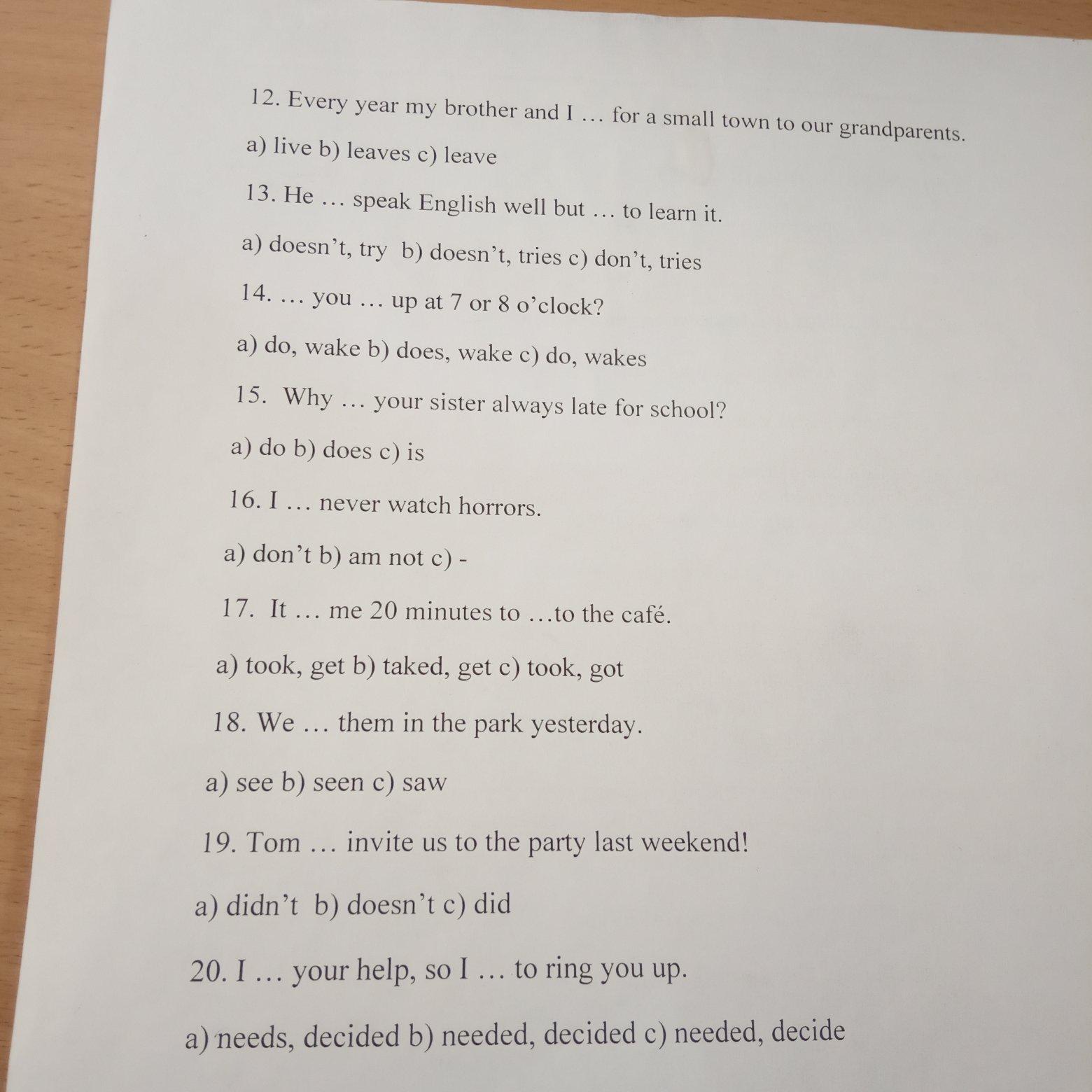 12. Every year my brother and I for a small town to our grandparents. c) leave