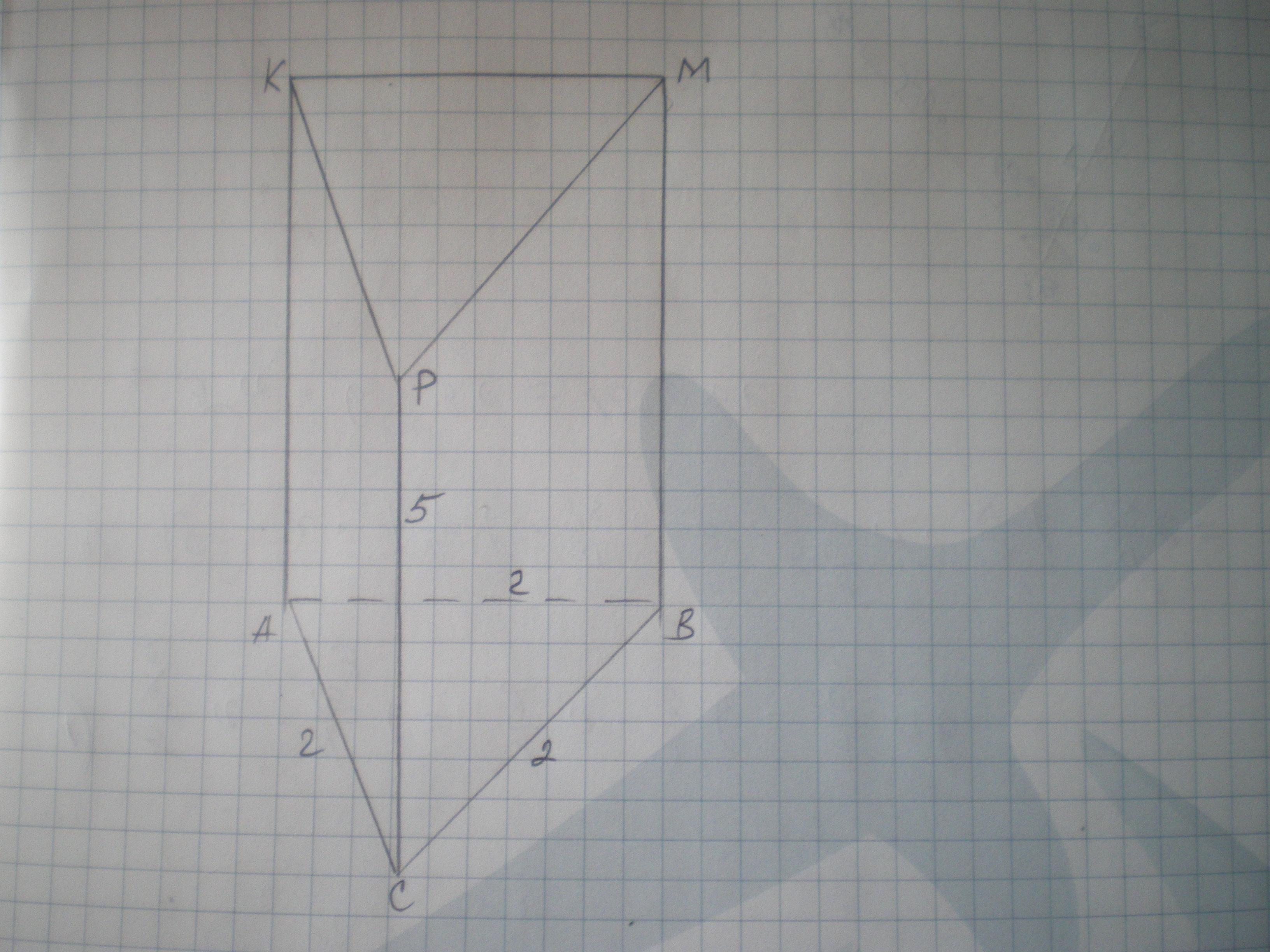 Дано: АВСКМР - призма, АВ=ВС=АС=КР=РМ=КМ=2 см.