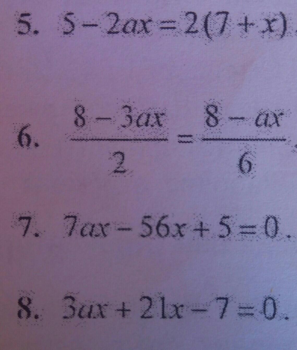 Объяснение:5)5-2ax=14+2x; 6)3(8-3ах)=8-ах;