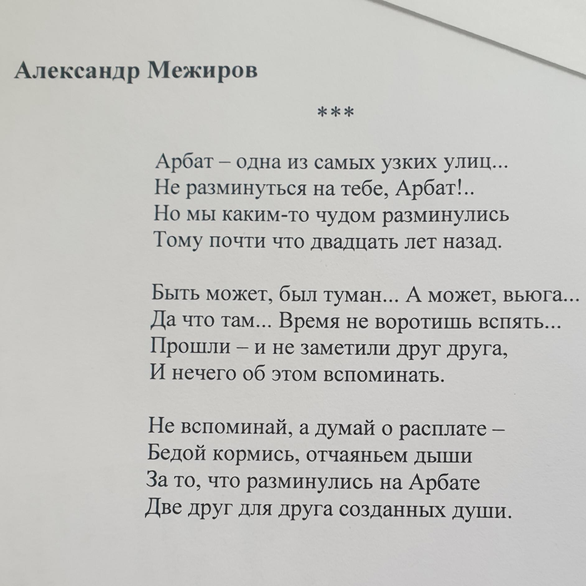 СРОЧНО НУЖЕН АНАЛИЗ СТИХА, ДАМ 35 БАЛЛОВ!!! Александр Межиров - Арбат одна из самых узкиз улиц...