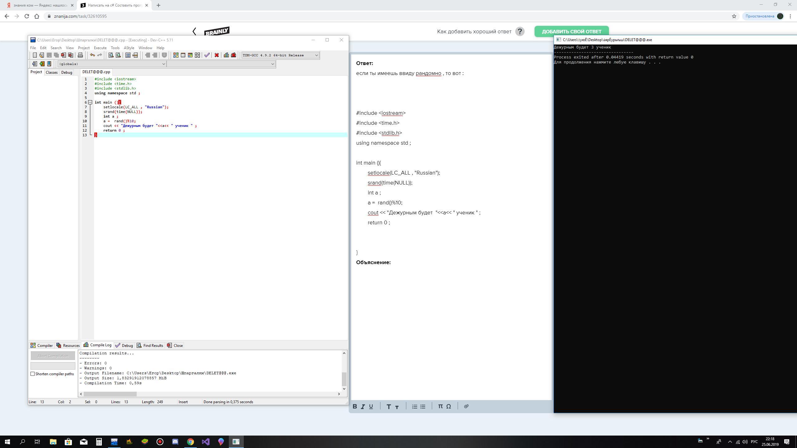 Составить программу используя оператор выбора. Назначить дежурного в классе из 10 учеников