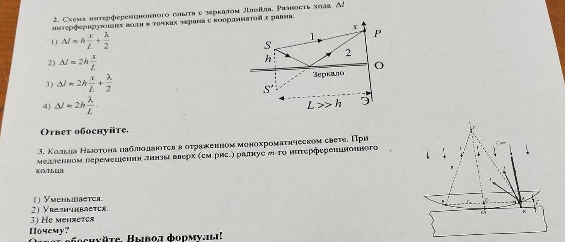 3.Кольца Ньютона наблюдаются в отраженном монохроматическом свете. При медленном перемещении линзы вверх радиус m интнерференциального кольца