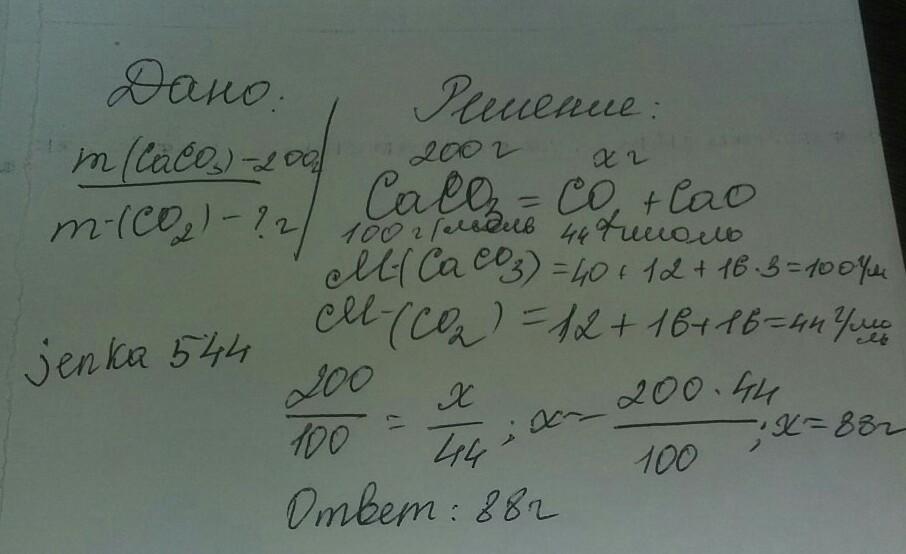 m(CO2) = 200 * 44 / 100 = 88 г