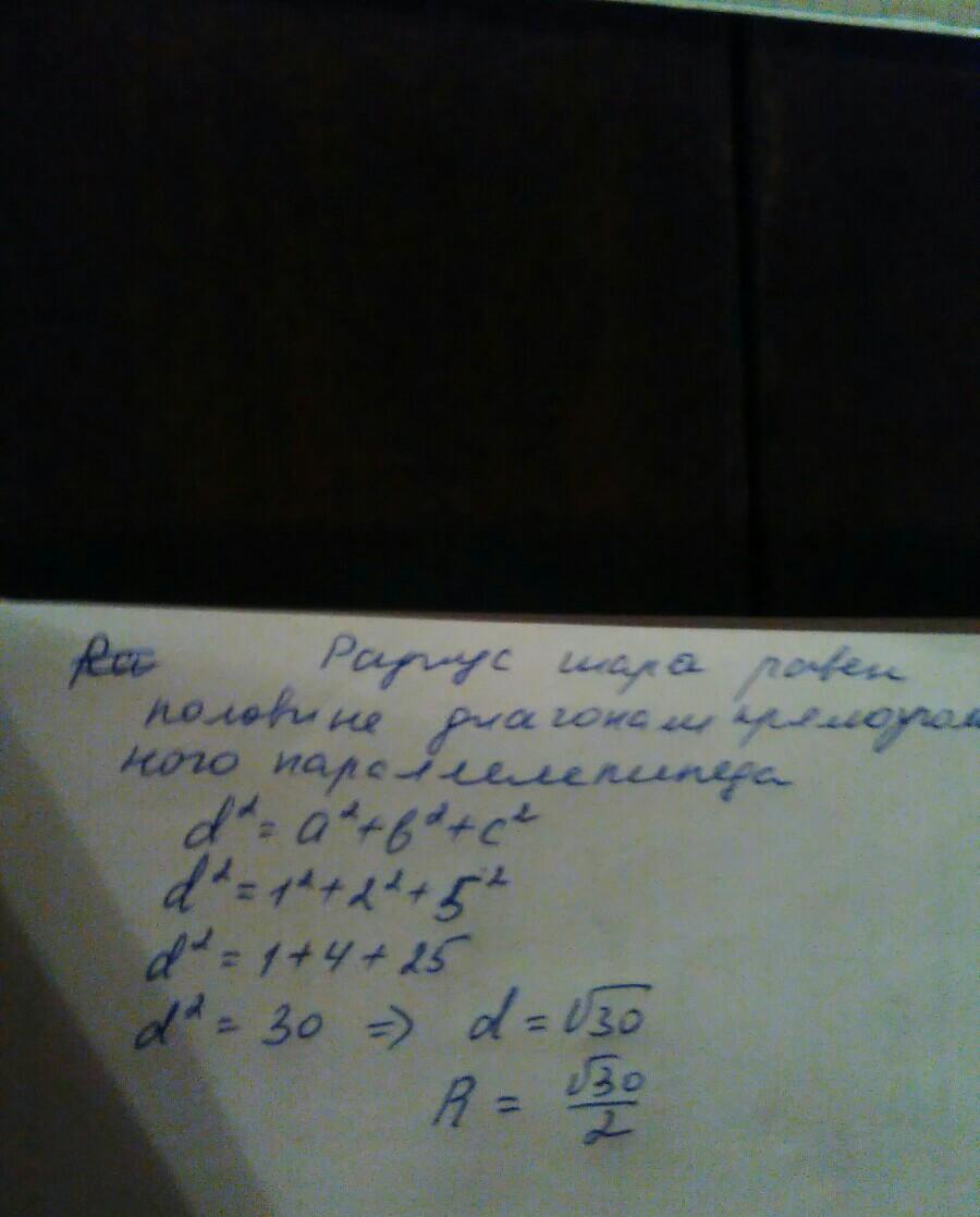 Вокруг прямоугольного параллелепипеда измерения которого равны 1 см, 2 см, 5 см описан шар. Найдите его радиус.