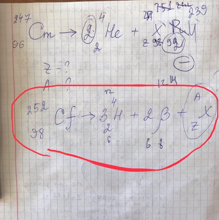 252/98Cf=>3*(4/2He)+2*(0/-1e)+240/94Pu