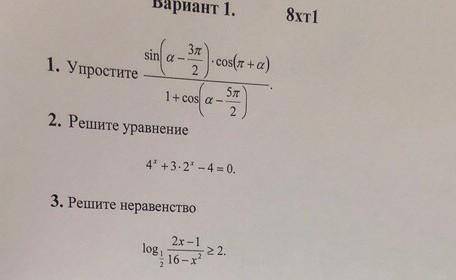 2)4^x+3*2^x-4=0, пусть 2^x=t,, t>0, t^2+3*t-4=0, корни t=-4(не подходит),