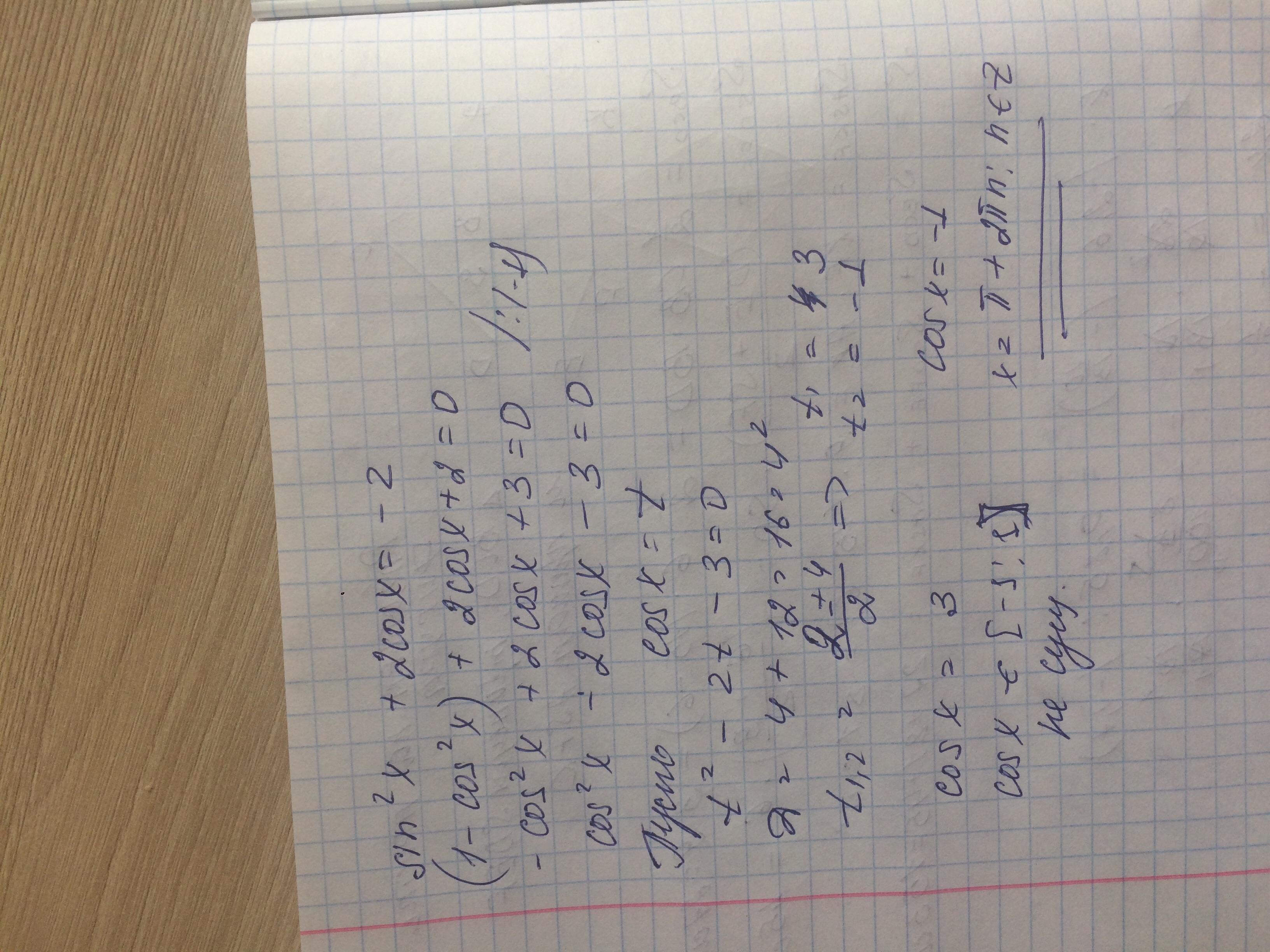 Замена на косинус квадрат с помощью основного тригонометрического тождества и замена