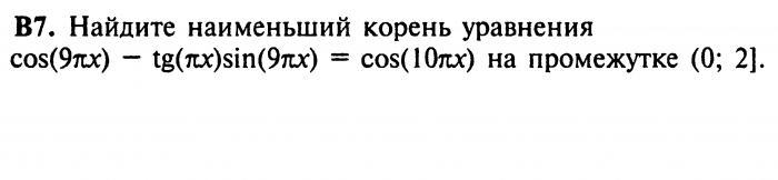 `cos(9pix)-tg(pix)sin(9pix)=cos(10pix)` на промежутке `(0;2]`.