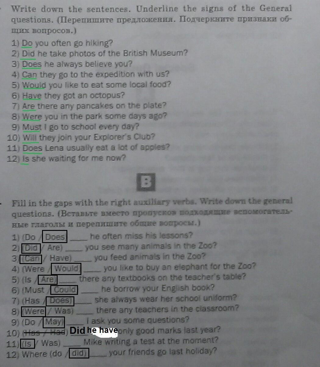 Я исправила вопрос в части B, потому что слова last year требуют употребления времени Past Simple, а у конструкции have got нет формы прошедшего времени, поэтому нужно употреблять глагол had, а в вопросе Did ... have