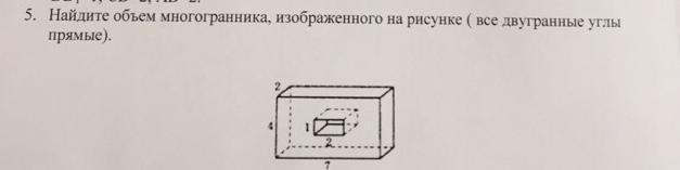 найдите объем многогранника изображенного на рисунке (все двугранные углы прямые)