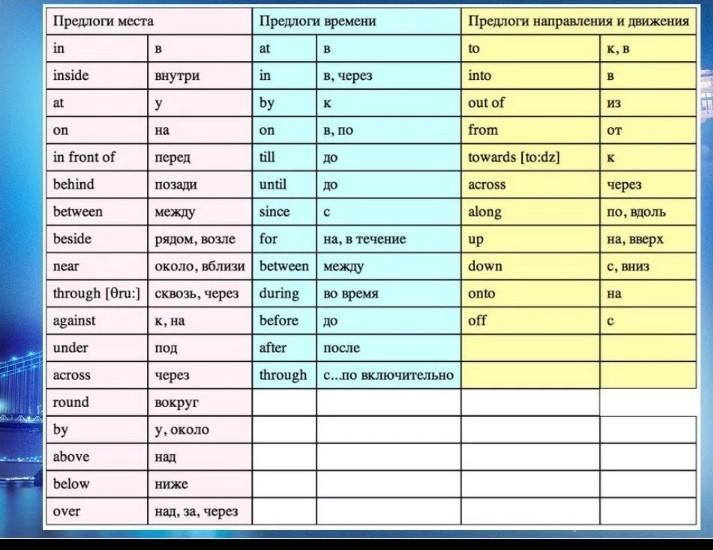 предлоги в английском языке