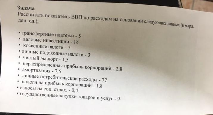 Рассчитать показатель ВВП по расходам на основании следующих данных (в млрд. ден. ед.)